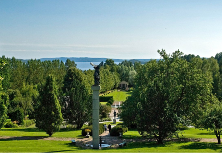 Rottneros Herrgård där vi guidas runt med en kunnig guide som beskriver många av de skulpturer som pryder
